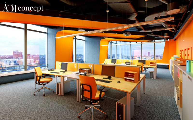- Văn phòng nên trang trí bằng đèn màu cam, tím để tăng sinh khí.