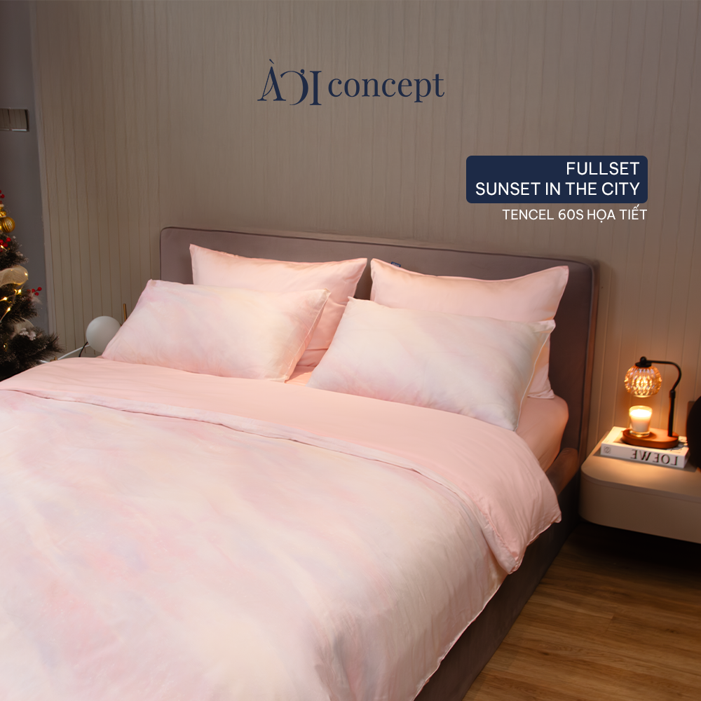 Bộ chăn ga gối Tencel 60s, họa tiết [Sunset In The City] À ƠI CONCEPT