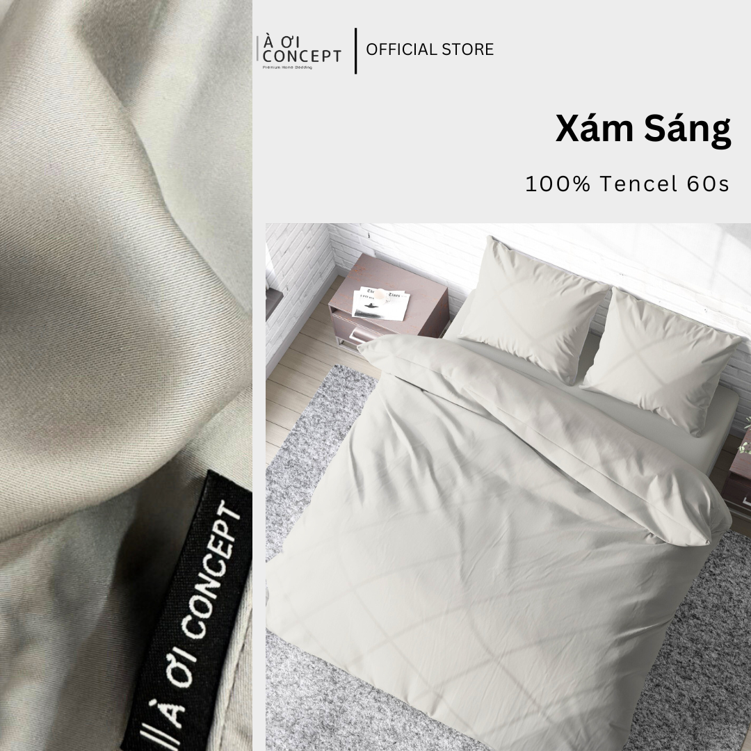 Bộ chăn ga gối Tencel Trơn | 5 món | 160x200cm, 180x200cm, 200x220cm | Xám Sáng | Mát lạnh, Mềm mịn, Trơn mướt | CGT0026 | À Ơi Concept