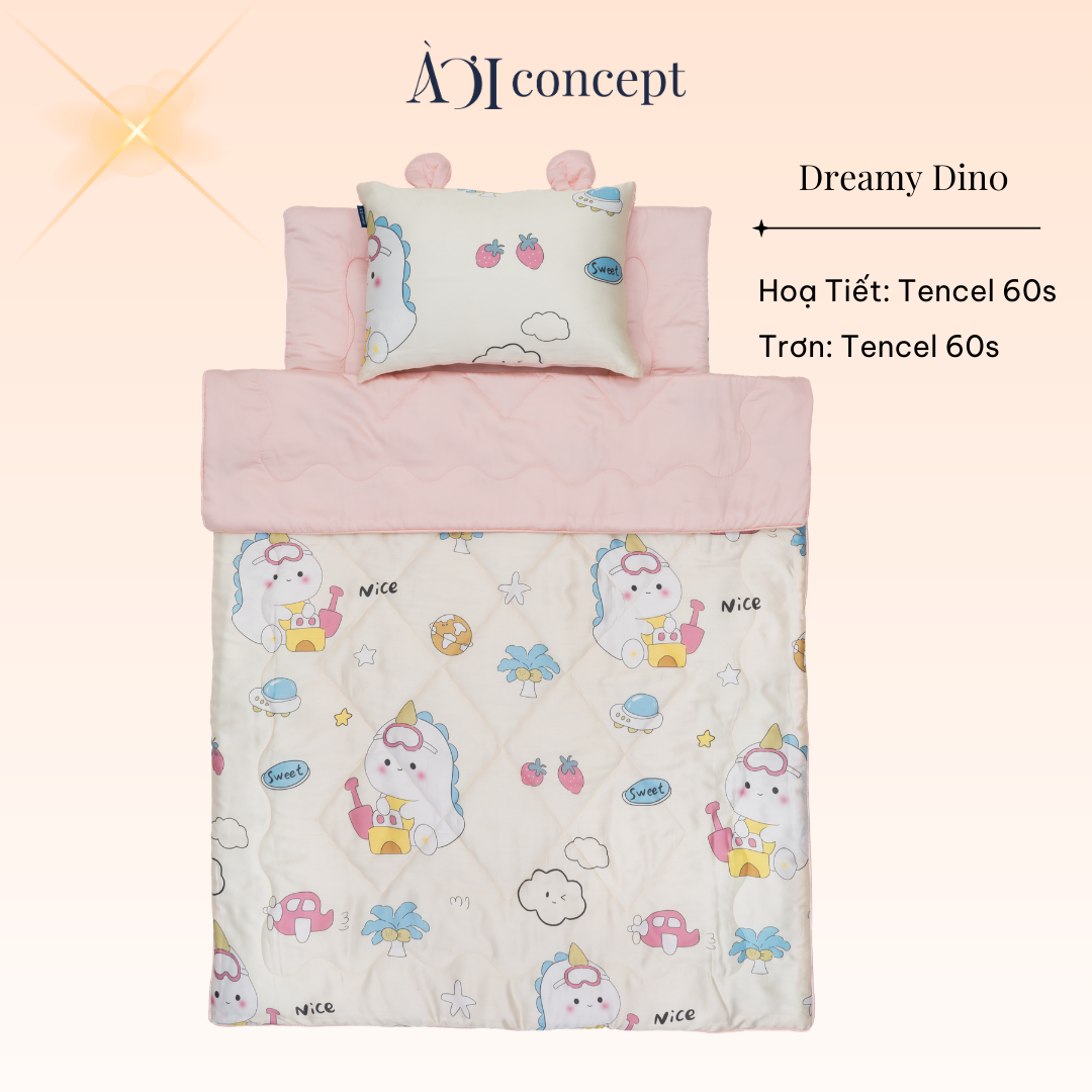 Bộ chăn gối nệm cho bé ( Mền lớn) Tencel 60s [ Dreamy Dino ]