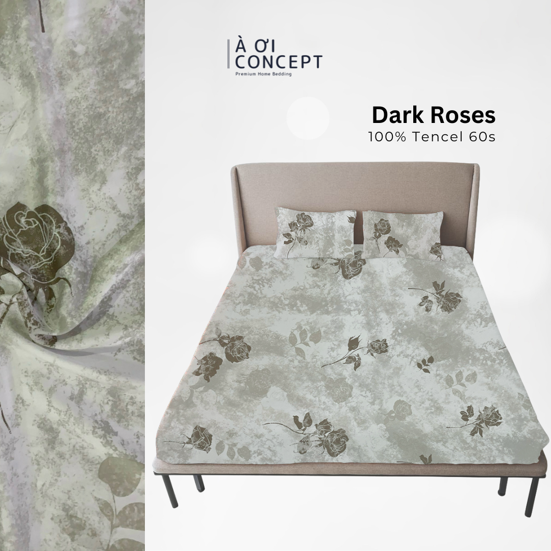 Bộ ga giường & 2 vỏ gối Tencel 60s [ Dark Roses] À ƠI CONCEPT CBTC0007