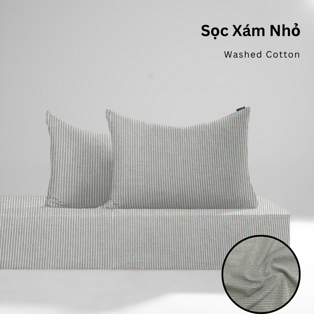 Bộ ga gối 3 món Washed Cotton [ Sọc Xám Nhỏ ] À ƠI CONCEPT