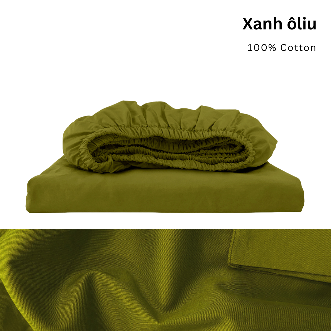 Drap giường Cotton Satin, Màu [ Xanh ôliu]