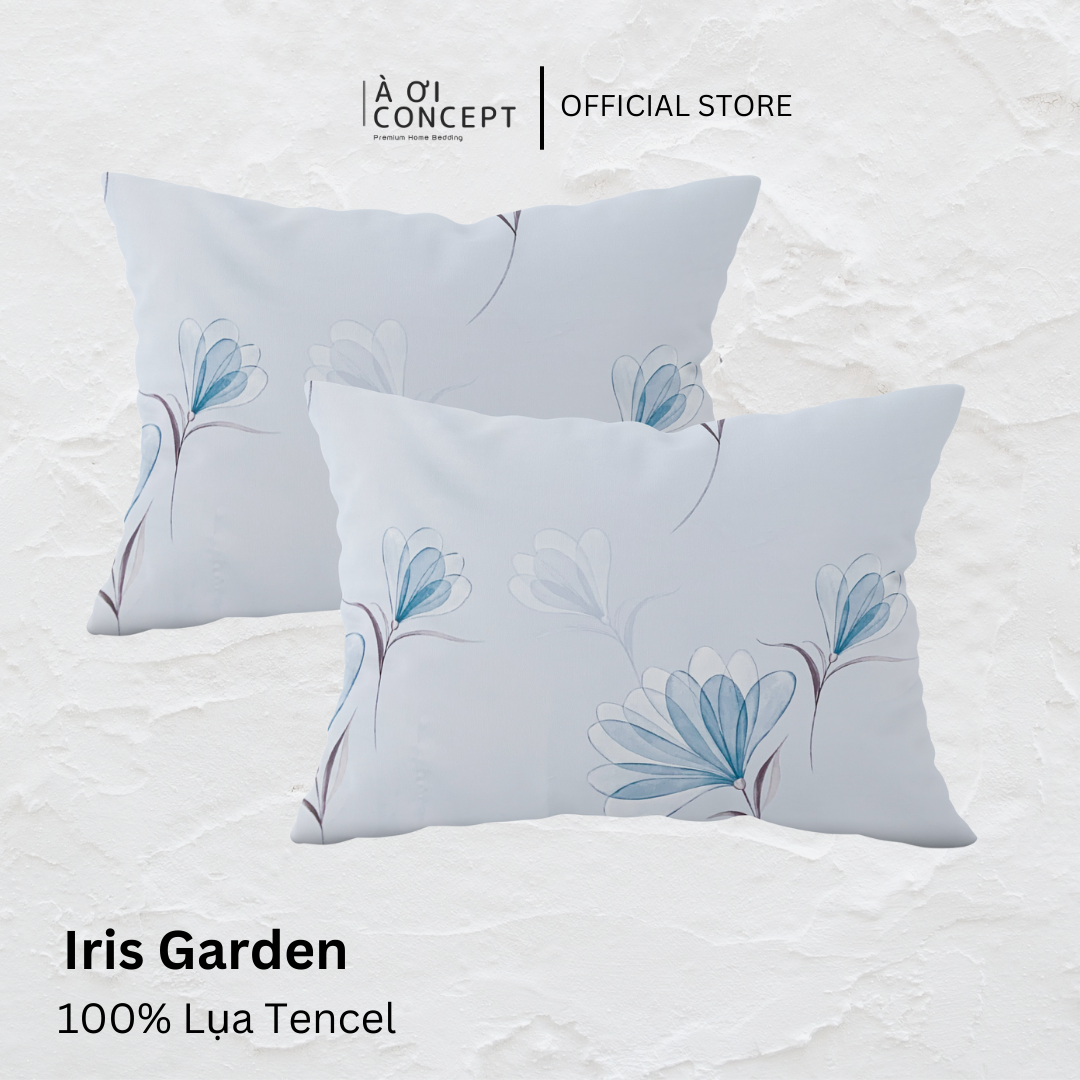 Vỏ gối nằm hoạ tiết | Lụa Tencel | 50x70cm | Túi lồng ruột | Iris Garden M1 | Mềm mại, Thoáng khí | VGTC00015 | À Ơi Concept
